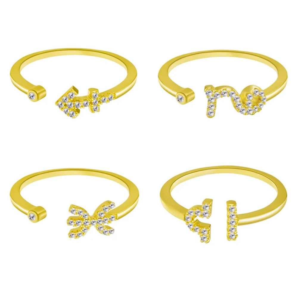 Celebre sua essência astrológica com o Anel Signos Banhado à Ouro com Cristal. Cada peça desta coleção única é uma homenagem ao seu signo do zodíaco, trazendo o símbolo correspondente delicadamente gravado e adornado com cristais que irradiam brilho e sofisticação.