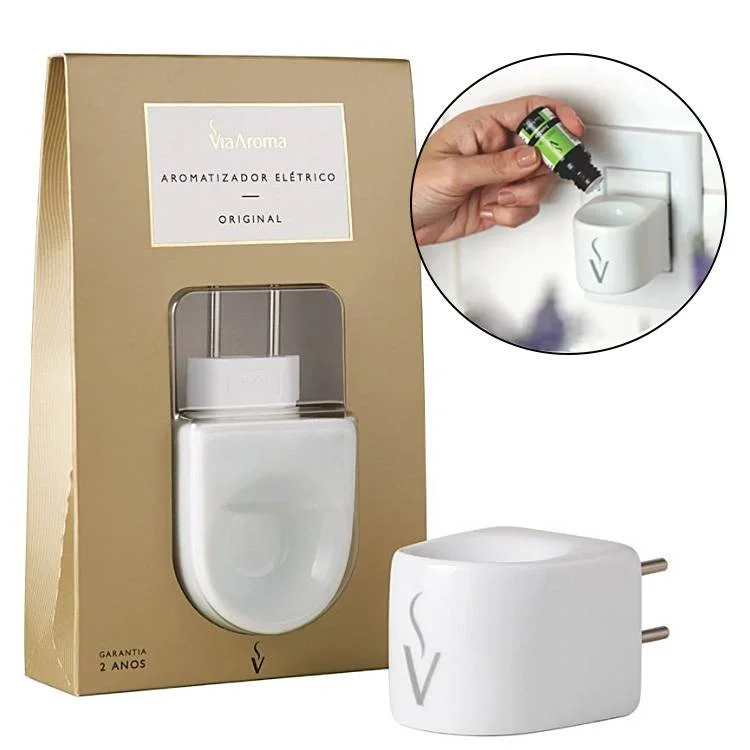 O Difusor Aromatizador Elétrico Bivolt Original Via Aroma promove a difusão de óleos essenciais e essências com praticidade, economia e segurança. Desenvolvido para trazer facilidade para a aromatização diária de todos os seus espaços, o aparelho é uma invenção original da Via Aroma. Garanta bem-estar em todos os momentos com nosso aromatizador elétrico de porcelana.