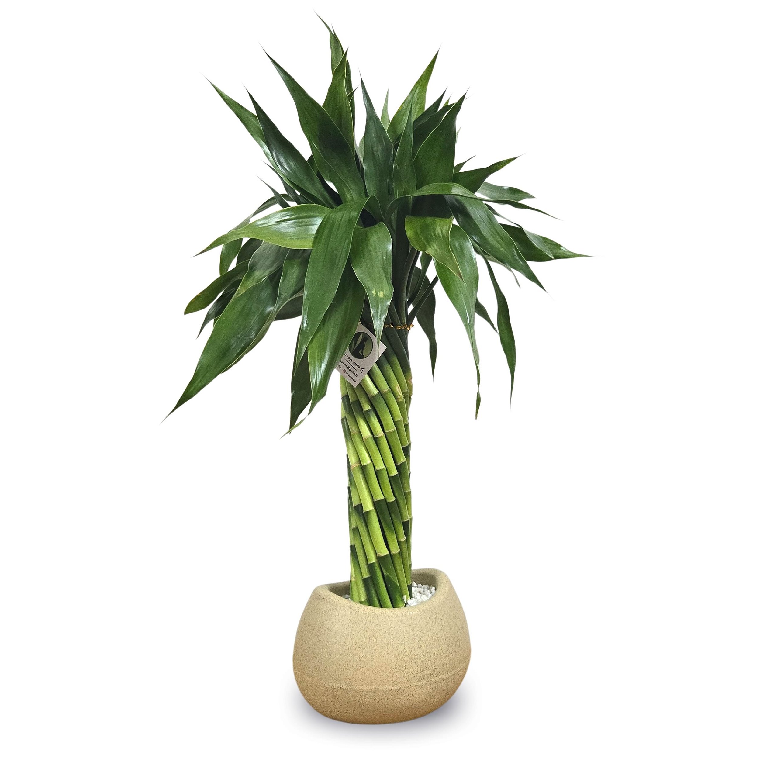 Usado com frequência nas práticas de Feng Shui, o Bambu da Sorte tem uma energia muito favorável, pois simboliza a próspera união entre dois elementos: a água e a madeira. Quando ele é oferecido como presente, costuma receber um laço vermelho, para que a energia do fogo seja adicionada, de forma que juntos, os três elementos possam atrair a energia positiva (Chi) para o ambiente.