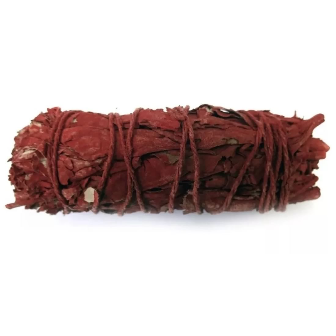 Bastão de Sálvia Branca impregnada com resina Sangue de Dragão, usada para limpezas energéticas mais densas/pesadas.