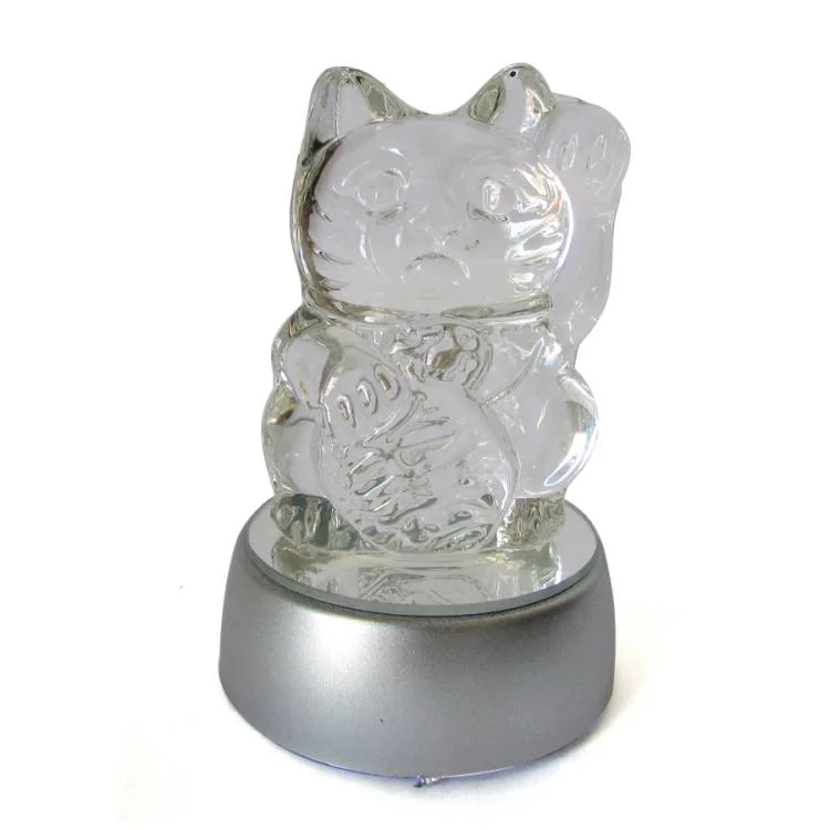 Transforme qualquer ambiente com o Manekineko de Cristal, o famoso gatinho da sorte japonês, agora com uma base de LED que realça sua beleza e energia.