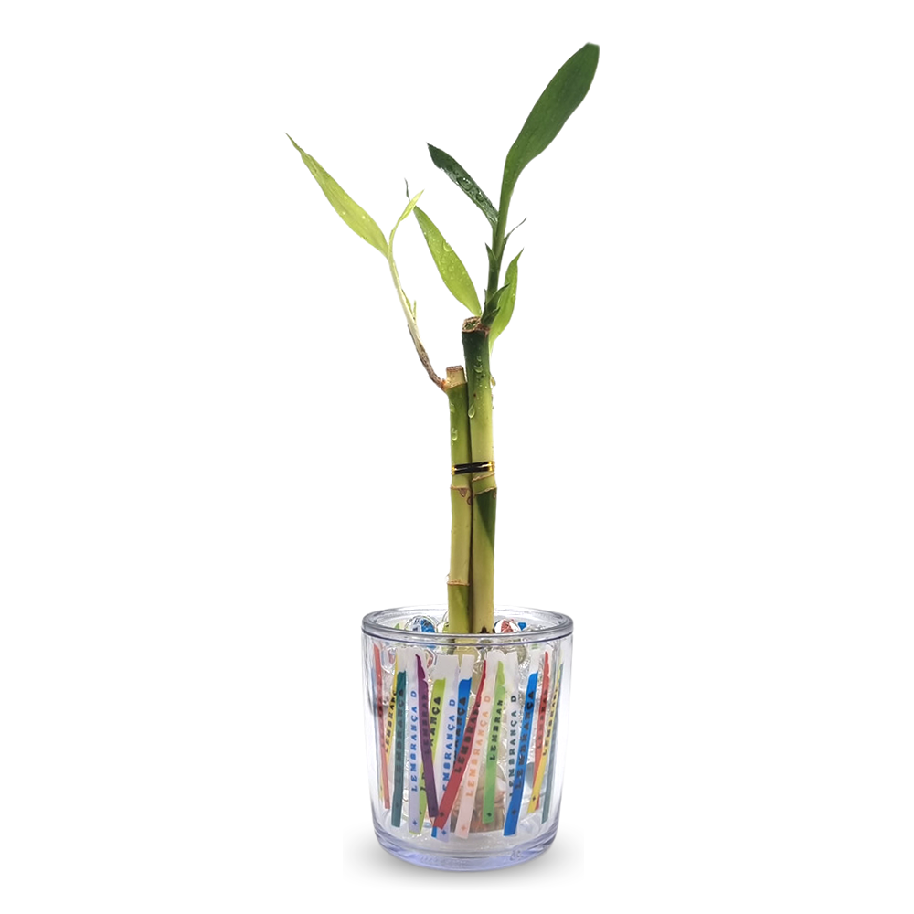 Mini Vasinho Cristal com Bambu da Sorte (Fitinha do Bonfim)