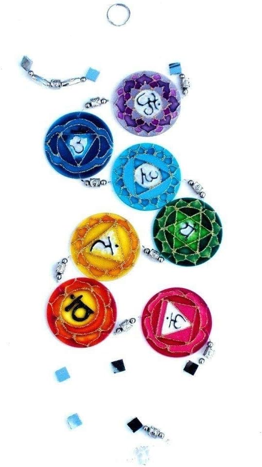 Um móbile produzido em vidro com 7 Mandalas, cada umarepresentando um Chakra, formando assim os 7 Chakras principais. Os Chakras são pontos de energia que dizem respeito ao equilíbrio de nosso corpo físico e espiritual e temos 7 chakras principais que estão posicionados ao longo da coluna vertebral: