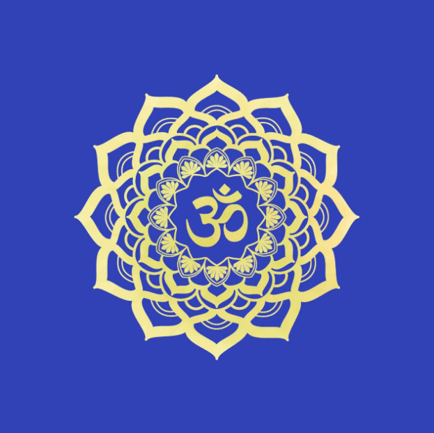 Usada em altares. Forma o solo sagrado para práticas ritualísticas, criando assim uma ligação entre você e o universo. Mandala com 12 casas, envolvendo o simbolo do mantra OM.
